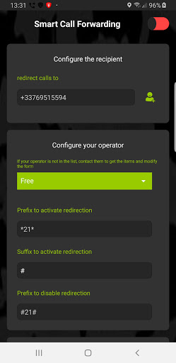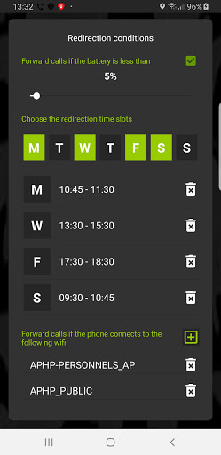 - Automatically forward incoming calls when the phone connect to a specific list of wifi network;