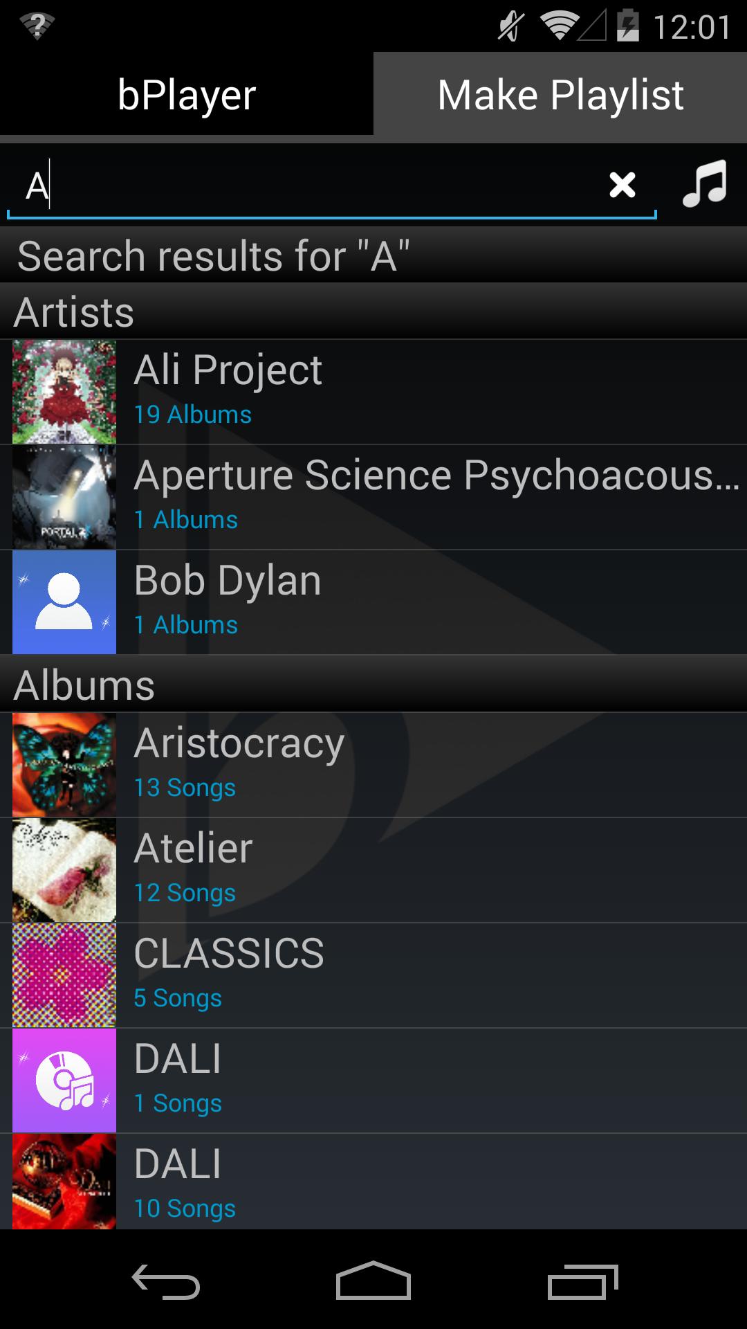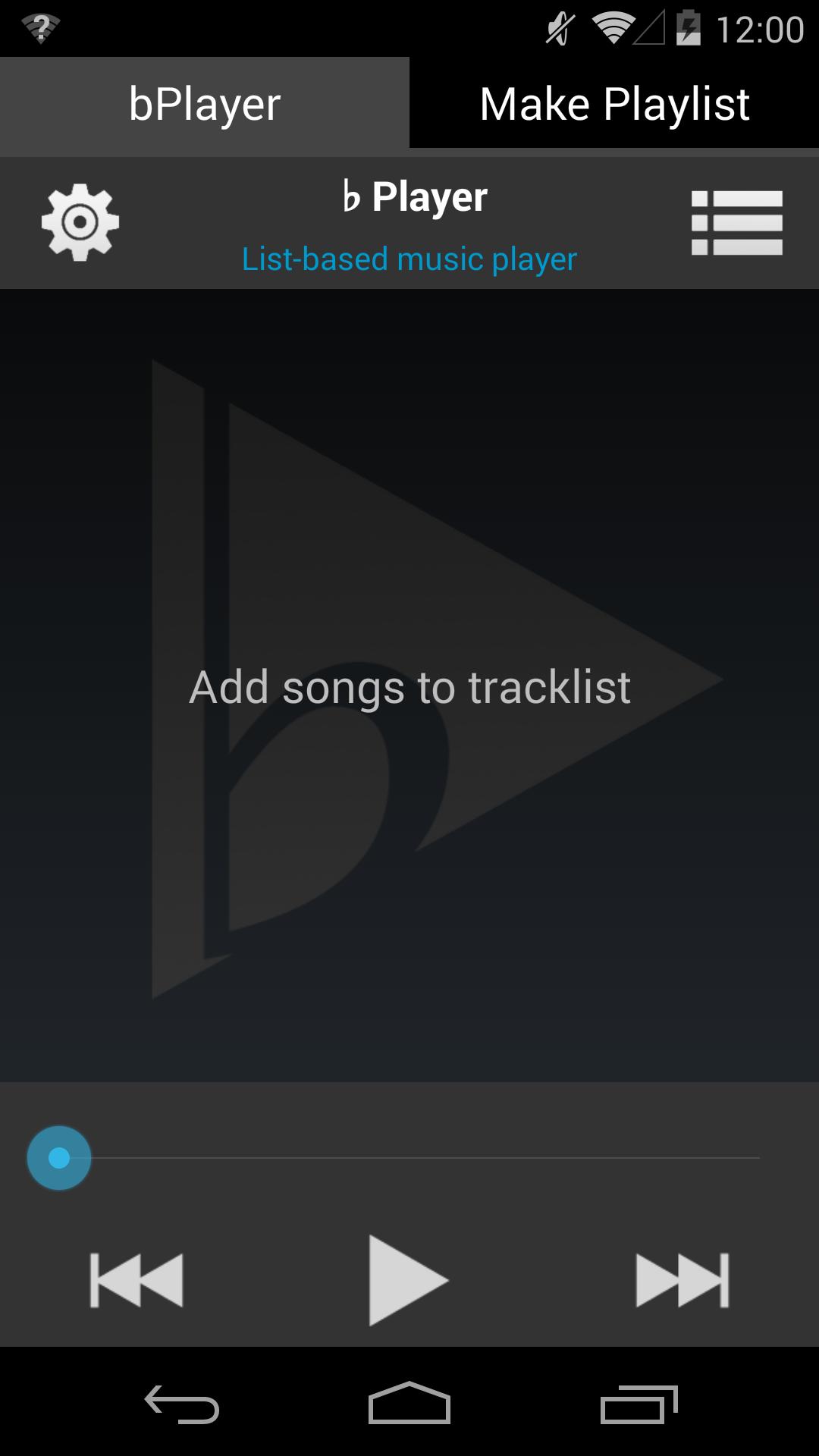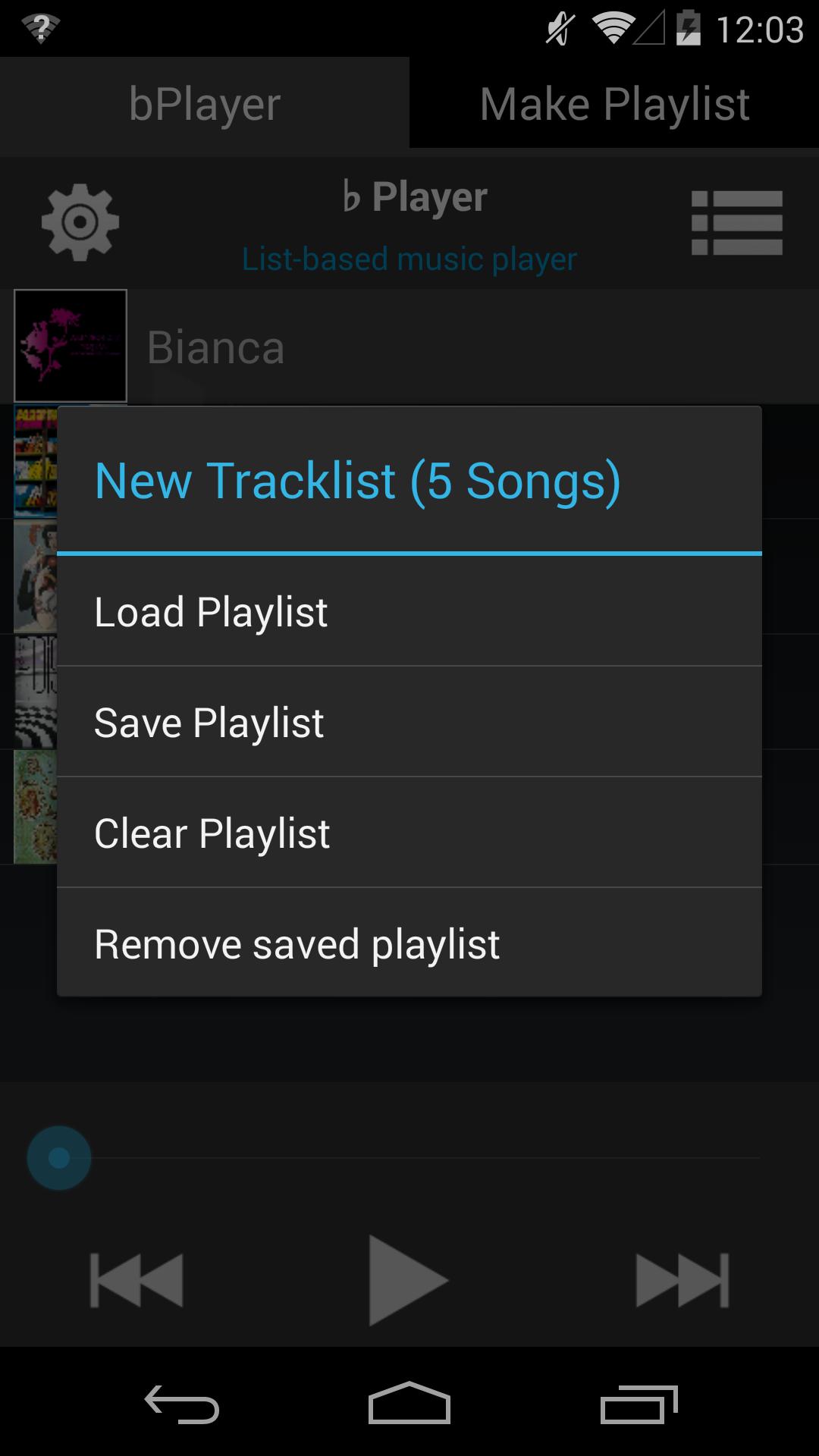 bPlayer es un reproductor de música para Android basado en la creación rápida de listas que te permite encontrar rápidamente tus archivos de música para agregarlos a tu lista o bien reproducirlos inmediatamente.