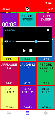 Instantly play your loaded audio clips at the touch of your fingertips