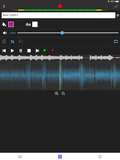 Edit name & volume. Set up loops & start/end points via waveform