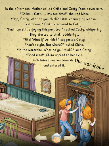 Whoa, where yes it goes grandmother’s notebook? Who took it? Is one of the twins? Or ... could it be anything to do with the secret door in the closet yesterday? Come, see the full story by downloading the application ""Secret Closet"".