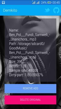 Remove ads from your music automatically. Works best if ads are placed before the song begins. Works best with free songs from www.mkito.com & www.mdundo.com