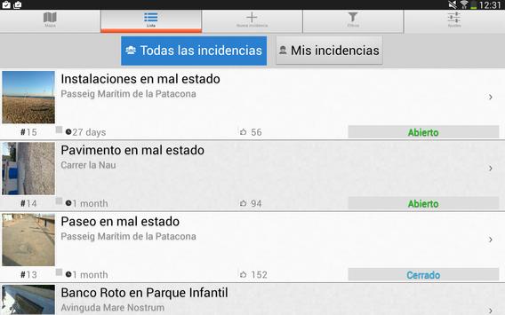 Subiendo fotos desde el móvil y señalando su ubicación en el mapa. Las incidencias se pueden votar y hacer seguimiento del estado de la incidencia denunciada, si está comunicada al Ayuntamiento, en espera, o solucionada. De esta manera, una denuncia publicada por una sola persona, puede ser vista y votada por la comunidad, y al ser una comunicación pública, la autoridad competente puede conocer el alcance y la relevancia que este asunto tiene para la comunidad.