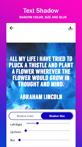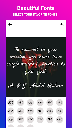 "Quotes Creator app" is used to create beautiful inspirational text pictures and sayings images for social media. You can make an attractive text on photos. Add poems/quotes to a photo and share your thoughts on social media. We provide a lot of options such as background, text colors, text size, and fonts, or you can select your photo from your photo Gallery and use it as background, then you can share your own quotes with your friends and family. You can use it as a "text on photo"to create "picture quotes".