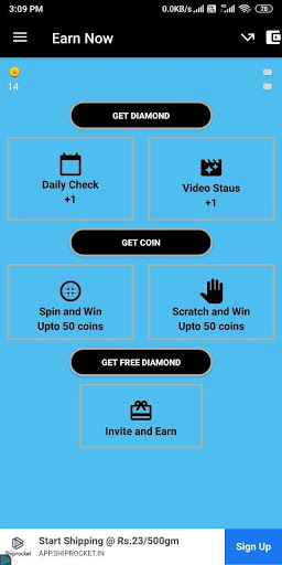 You can get Diamonds from: Daily Bonus, Watch Videos, Invite Friends