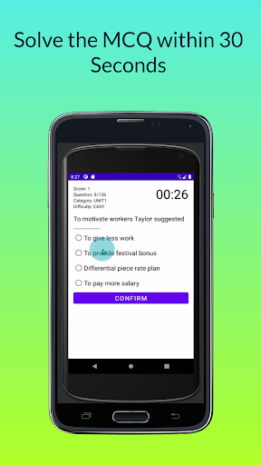 Management MCQ App covers questions from all the six units. Also the questions are divided into three levels: EASY, MEDIUM and HARD. This helps students to prepare for the subject thoroughly for the online test