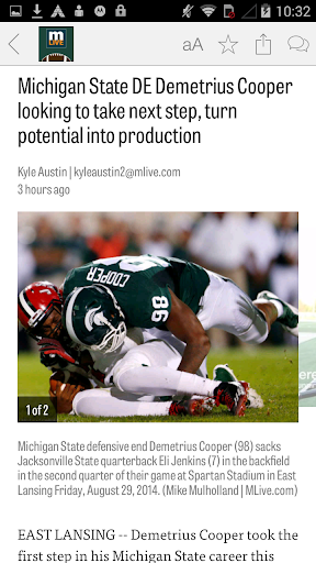 MLive.com: Michigan State Spartans Football News app gives Spartans fans exclusive access to the latest news, videos and photo slideshows from MLive.com. Read exclusive articles about the Spartans and other rival teams, catch live Twitter updates from fans and experts, view and submit photos from the game.