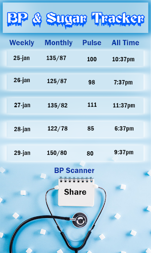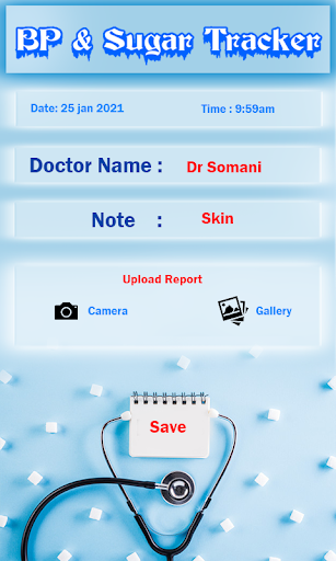 Blood Pressure tracker and Blood Sugar Checker Log is a diary to maintain log of your daily BP levels, Sugar Levels and Pulse (heart beat levels). This BP and Sugar app contains special feature of my person Doctor details in which you have option to enter details of doctor’s prescriptions, medicines for future use.. You have can maintains log of as many people as your want. Get all medical related details in one app at any time.