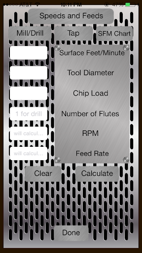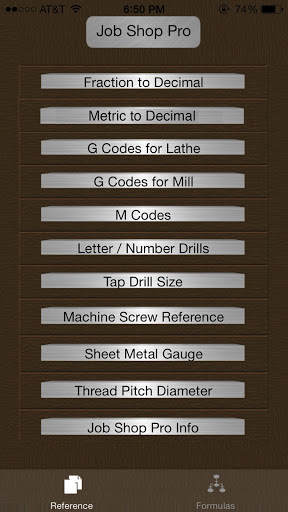 Are you a metal working professional? Job Shop has more of the information you use on a daily basis than you'll find anywhere. Things like drill sizes, tap drill sizes, g and m codes as well as angle and speed and feed calculators, a bolt circle calculator and surface finish calculators. Calculate sine plate stack ups, ball mill step over scallop height and true position deviation. A real time saver, You won't find a more helpful app for the money.