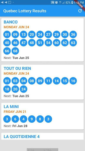 - Lotto 6/49 - Lotto Max - Quebec Max - Quebec 49 - Banco - TOUT OU RIEN - La Mini - La Quotidienne 4 - La Quotidienne 3 - Extra - Triplex - SprintO
