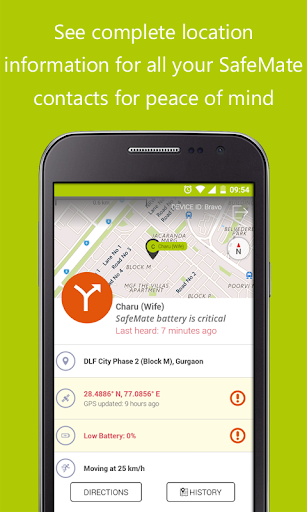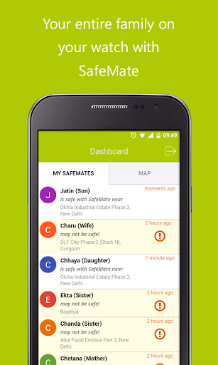 Safemate is the companion app to the SafeMate (http://safemate.mapmyindia.com) devices for your family. Once you have bought the small device, login to the app and see real-time location information of your family members and ensure their safety.