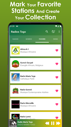 In this App you will be able to listen to the most popular online radio stations with the most followers throughout the Togolese territory, in these radios you will listen to genres such as: Gospel, religious, Christian, African, world music and a great variety of African genres, as well such as the Togolese radio station María Togo and the Radio Gameli station, considered as the most important stations with the most followers in the entire African territory.
