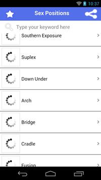 The application "Sex Positions" contains more than 100 sexual postures classified .If you want to try something new today, simply select one of the poses that will strike your fancy.
