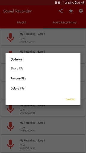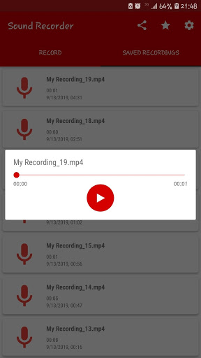 Free and easy to use Sound recorder for Android. It has been specifically designed for high-quality and long-time recording with a clean and simple user interface.