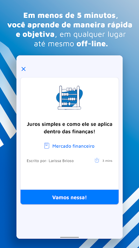 Sabemos que a forma como você consome um conteúdo é tão importante quanto o conteúdo em si. Por isso, desenvolvemos um aplicativo pensando em você, que quer se dedicar às suas finanças pessoais, ter mais controle de gastos, mas precisa daquele impulso inicial e de uma melhor organização dos temas.