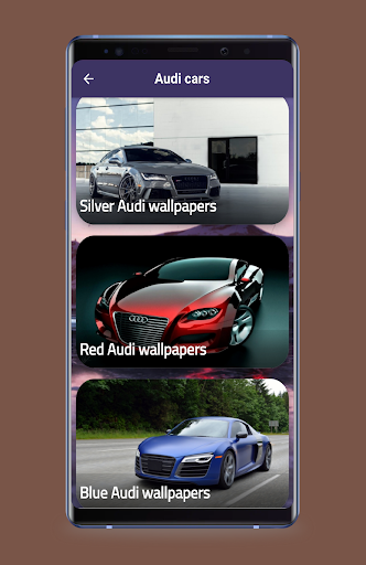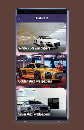 The application offers audi wallpapers, HD wallpapers