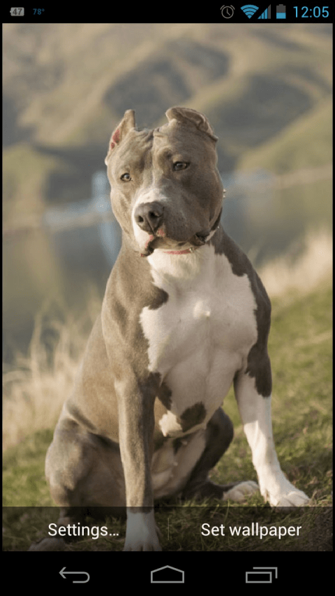 Blue nose pitbull dog live wallpaper is a photo slide transition wallpaper. Watch as your favorite dog breed changes pictures on your background every 2 minutes.