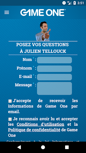 L’utilisateur peut prendre connaissance de notre politique de confidentialité et de nos conditions générales d’utilisation ici : http://www.vimn-france.com/CGU_GAME_ONE.pdf
