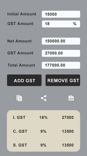 * Calculate GST With One Single Click & Get IGST, CGST and SGST Values.