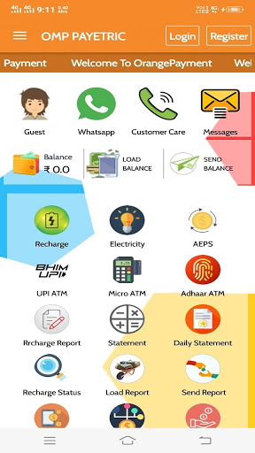 OMP PAYETRIC Application also give a facilities for Electricity bill, AEPS, UPI ATM, Micro ATM, Adhaar ATM.