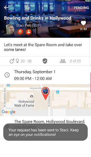 : Create Public Events to meet new friends, or Private Events visible only to friends you invite.