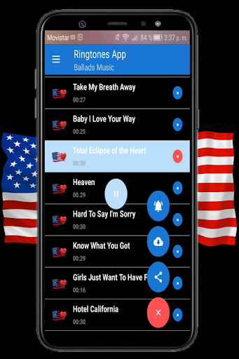 Only American ballads in English for mobile free an app for all Android and Tablet mobile devices to place as ringtones a large collection of classic American ballad rock songs 70, 80, 90, romantic ballads, the best option to choose as ringtones calls, notification tones and how about waking up every morning with personalized alarms with the dance rhythm, classic, fun, romantic, love, soft, melodious, romantic, beautiful tones, cute and elegant tones, songs songs in English, With a rhythm similar to classic rock, it has a mix of melodies and different guitar sounds to get attention when your cell phone rings, select the ringtone of American ballads of your preference, that you want you can download the mp3 sound, set the song directly and share it with all your friends and family to enjoy the ringtones of ballad classics to remember and re live rock bandit, rock ballad guitar, ballad tones for WhatsApp, free app for ringtones of ballad songs rock 2018, ringtone music app for text messages.