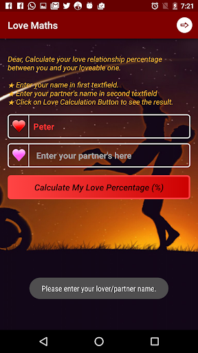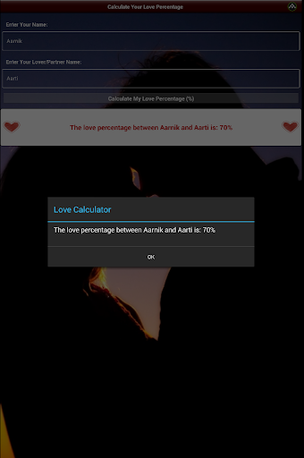 Love Calc/Calculator, an app is for calculating love percentage between you and your dear lovable partner.