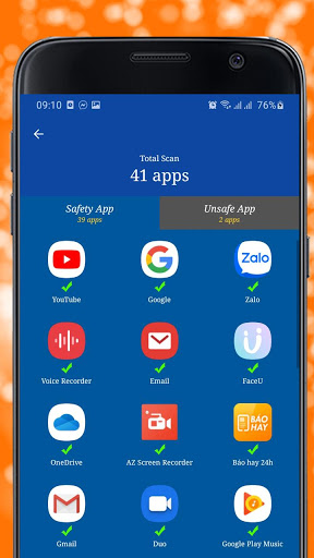 1) App Scanner and Safety Checker: scan all resources to finds malware or unsafe app to can remove or uninstall them. Scan and test each app one by one, check the structure of apk files to protect unknown malware files, or not downloaded from Google Store