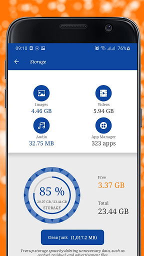 2) Storage Space Cleaner: if You are running out of memory storage space and want to clear up some space. If you want to know how much memory is actually available to you for your apps, music and stuff. This is a simple overview of your storage space clearly showing how much memory is available for your apps and files.