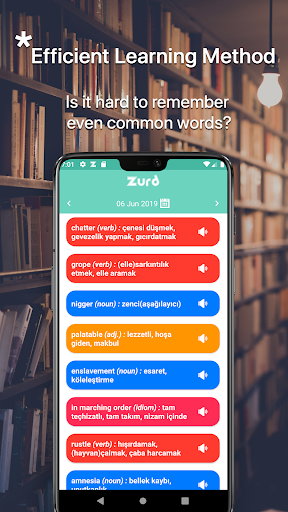 Zurd is your "Daily Word Teacher". It aims to teach you foreign language (Now it is just English), in a super easy way without making you exhausted.