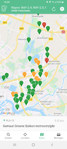 - Location status colours: green (checked), orange (soon to be measured), red (high priority)
