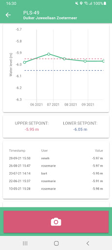 - Location overview page with water level setpoints and target values