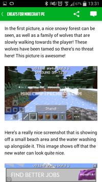 Cheats for Minecraft PE is an application which is updated multiple times daily with content to enhance your Minecraft Pocket Edition experience.