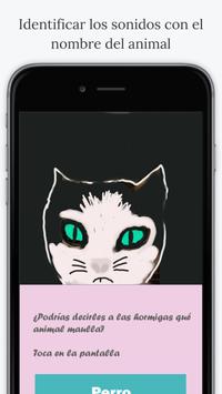 - The animals , their sounds and names of the sounds ( meowing , barking, cackling, roaring )