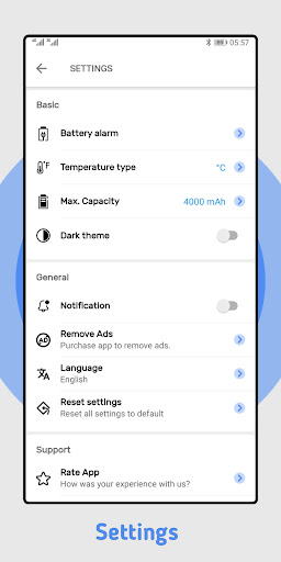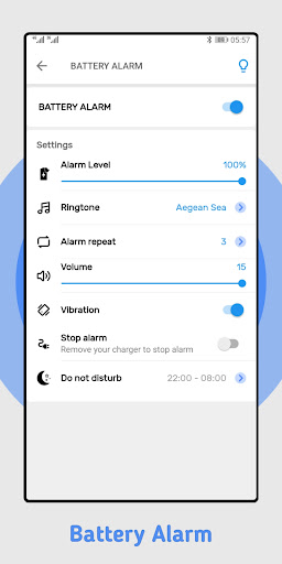 ⭐️ Set custom battery alarm(in the app settings).