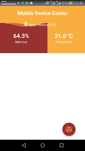 Mobile Cooler is specially designed to reduce CPU overheads by killing long running background processes. Mobile Cooler keeps CPU Cool and keeps its temperature in check. Mobile Cooler keeps check on your running tasks and detects unused cache, Mobile Cooler then kills background long running tasks and clears cache to make more space available for running apps.