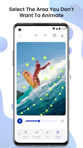 Photo motion is a unique and amazing application which helps you to select your image which you want to make animation effect images from gallery and select your area which you want to move with the help of arrows and also put mask on image to make that area not moving after you complete your editing you can play your movie and get your results with gif images. You can easily set motion background.
