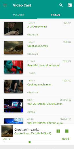 The apps allows you to immediately and easily cast your avi, mkv, mp4... video files from your Android device to the TV.