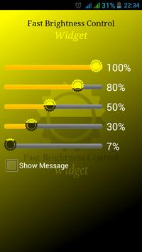 Fast Brightness Control Widget (FBCW) is easy and simple to use. It gives you ability to control the overall brightness of your screen with only one click.