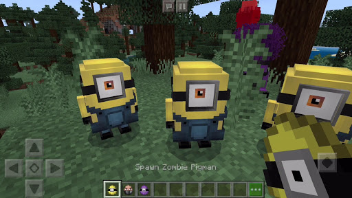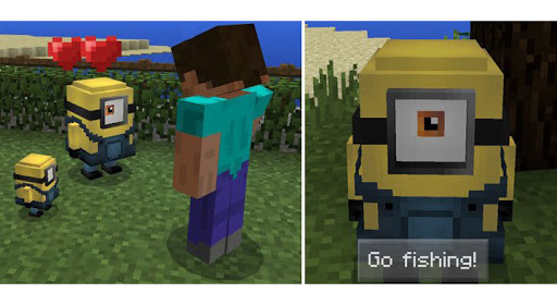 Minions are yellow, small, cylindrical creatures which are most known for their appearance in the Minions movie. This addon adds the minions (evil ones included) and Gru to Minecraft PE. The minions are very cute and can be used for multiple things. For example, you can tame them, have them fight for you or you can send them away on missions such as hunting or to go fishing.