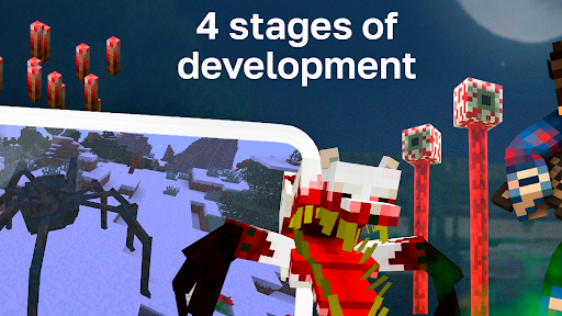Mob has the ability to spawn in dark and literally in a minute it turns powerful destroyer parasite creatures mod for Minecraft Bedrock.