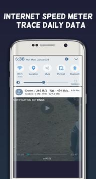 Internet speed meter is a lite and fast tool to display your internet speed on status bar. Internet speed meter lite and its display Daily Usage For Android device Speed In Notification-bar and keeps track on daily usage and its creates Monthly Billing Cycle. its shows real time speed running applications. its shows mobile internet and WiFi speed. and this app is completely Free.