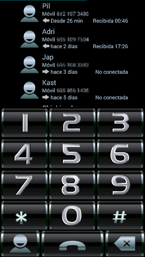 This is a theme for ExDialer & Contacts aplication: com.modoohut.dialer.theme NICE THEME WITH BIG NUMBERS COLORS BLACK METAL SILVER, UNIQUE IN ITS KIND THEME INSTALLATION: -Open exDialer -MENU -Preferences -THEME -Select BLACK METAL -Apply ENJOY