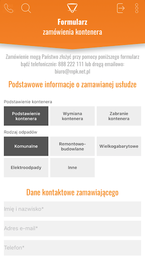 Zamawianie kontenerów na odpady – aplikacja MPK Pure Home pozwala na nawiązanie kontaktu z biurem obsługi klienta Usługodawcy. Po kliknięciu ikony „zamów kontener” można wysłać swoje zapotrzebowanie na pojemnik do gruzu lub śmieci poremontowe, a następnie zagospodarować go w wybrany sposób. Tego typu rozwiązanie należy do unikatowych w skali kraju i na pewno przypadnie Państwu do gustu.