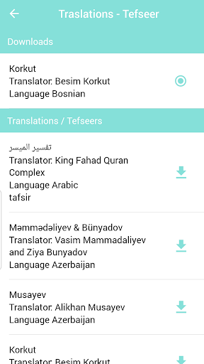 You can choose and listen to your favorite reciters. Pages are download one by one so you can download the surah you want from different reciters.