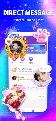 In TalkTalk, you will find that there are gorgeous gift effects, so that you can fully express your mind and personality when you meet the person you like, and also show your wealth in front of others. Complete the system tasks, you can get free game coins every day, every day you have a free opportunity to send gifts to your favorite people.