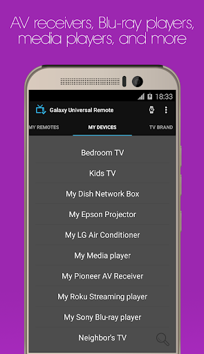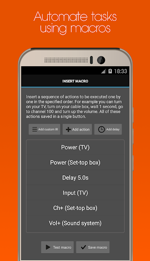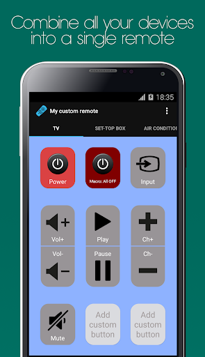 The app uses the built-in IR blaster of your phone to control your devices. You just select the brand of the device that you want to control, and that's it. You can customize how your virtual remote will look like, send macros, custom IR codes and plenty of other features that you're going to love!