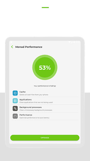 Optimizing your device to increase speed and responsiveness up to 100 times more than before has never been easier. With just one tap, your Android device will be fully optimized for the best performance available! Monad Performance's sophisticated algorithm allows fuller and deeper cleaning, ultimately making even older phones much faster.