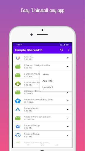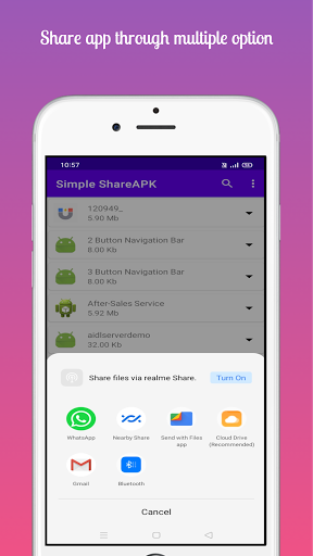 Allows you to send apps quickly using Bluetooth, WhatsApp, Gmail, etc.