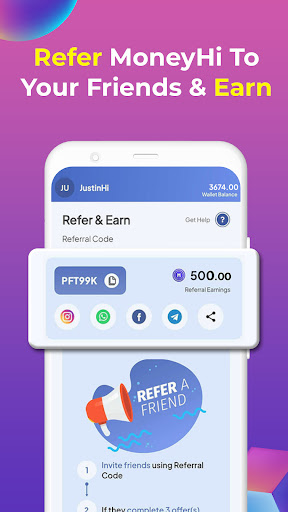 Refer the best money making app MoneyHi to your friends and earn extra money.